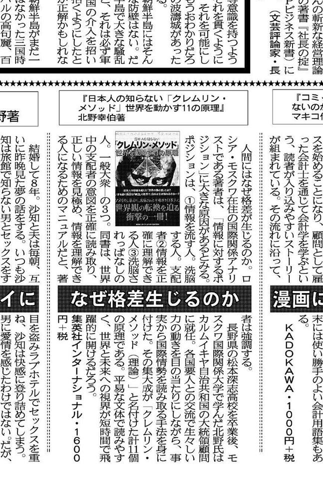 この本について「夕刊フジ」(2015年1月15日付)は、